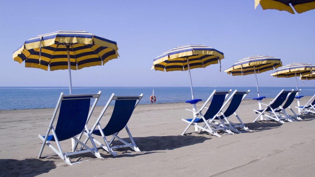 - Чадъри, шезлонги или плажни столове на плажа;